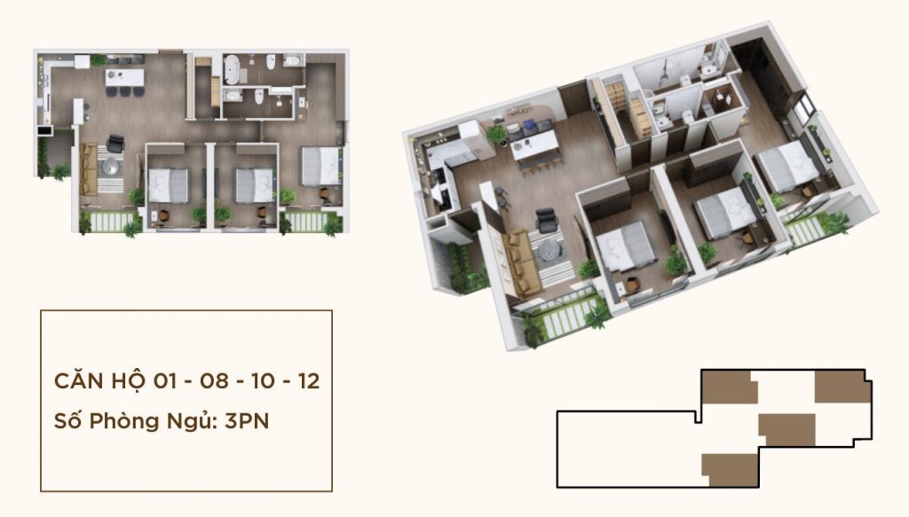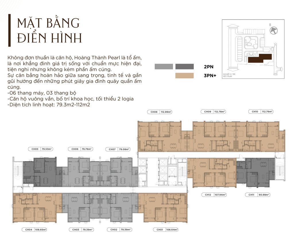 Thiết kế vô cùng hợp lý với căn 2 phòng ngủ 78 – 80m2, căn 3 phòng ngủ 106 – 108 – 112m2 với 2 ban công tận dụng tối đa ánh sáng tự nhiên. Mỗi căn hộ đều được trang bị nội thất và thiết bị đến từ những thương hiệu cao cấp nhất. Chỉ với 12 căn hộ trên một mặt sàn với 5 thang máy, giao thông trục đứng cũng trở nên tiện lợi hơn bao giờ hết.