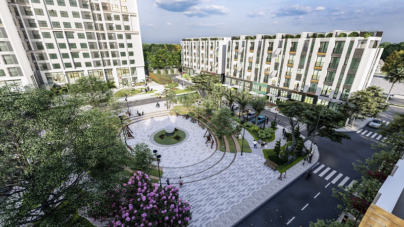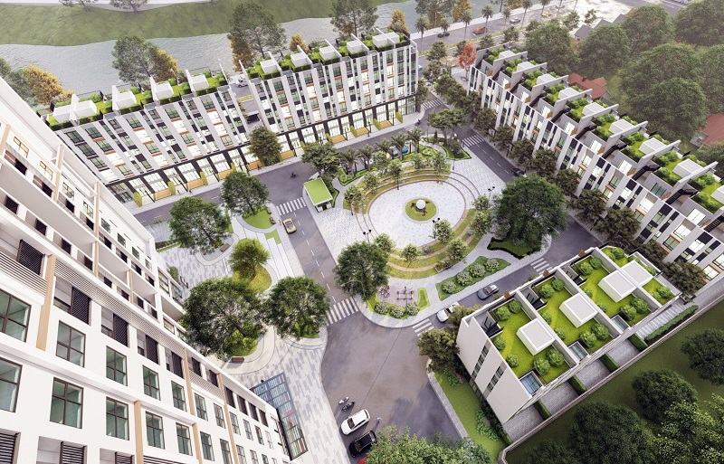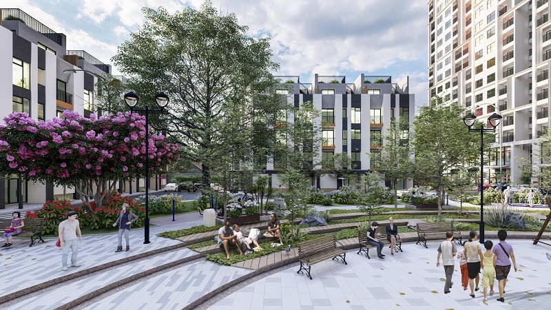 - 03 block nhà ở liền kề có chiều cao từ 5-6 tầng là cơ hội để kinh doanh, đầu tư sinh lời và là ranh giới tự nhiên để kết nối hạ tầng ngoại khu và nội khu